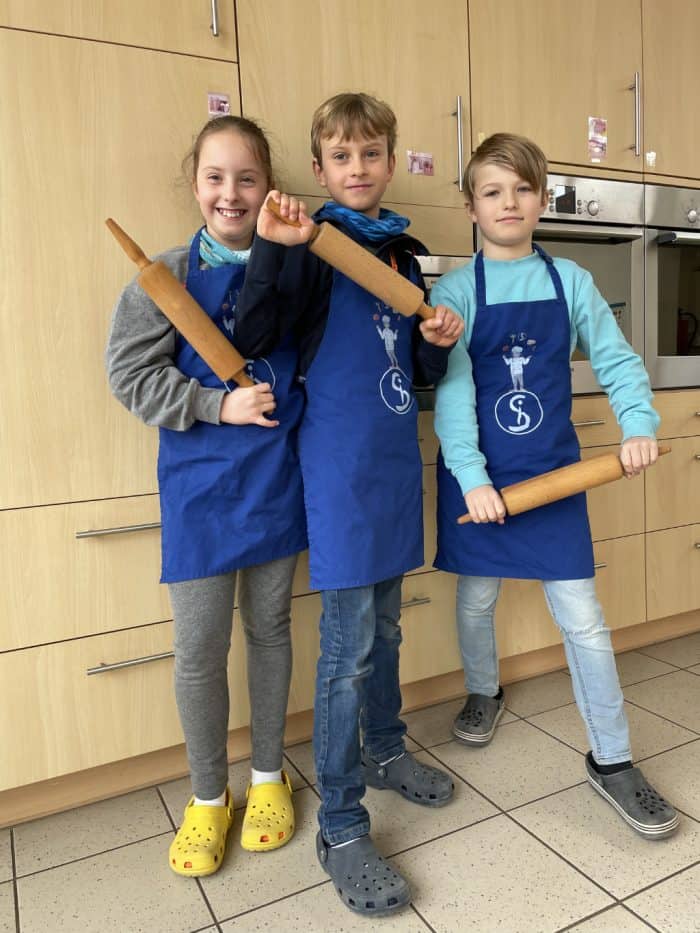 Die 4. Klassen freuen sich über die neuen Schürzen im „Silberberg-Look“ für den Ernährungslehreunterricht.