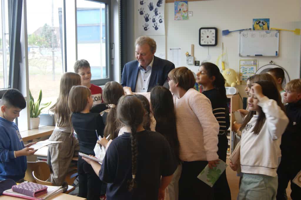 Ein weiteres Highlight des Besuchs war, dass die Kinder sich viele Autogramme vom Bürgermeister holten – sogar auf ihren Armen! Die Begeisterung war groß, und die Kinder strahlten, als sie ihre „Sammlerstücke“ stolz präsentierten.