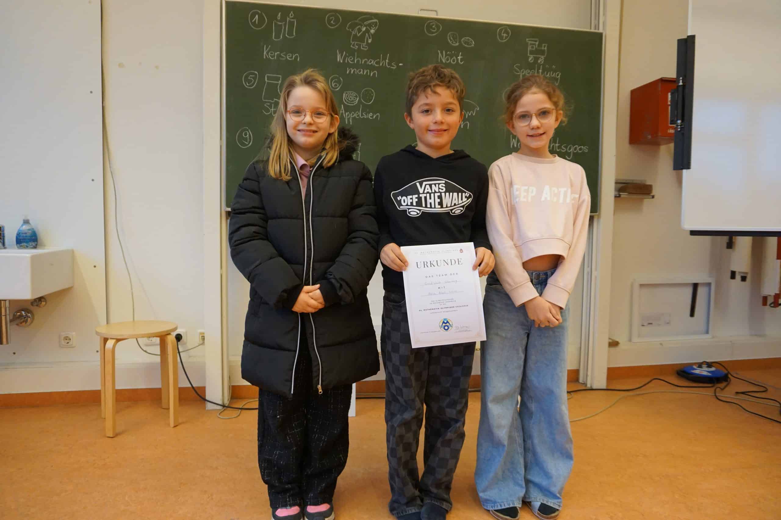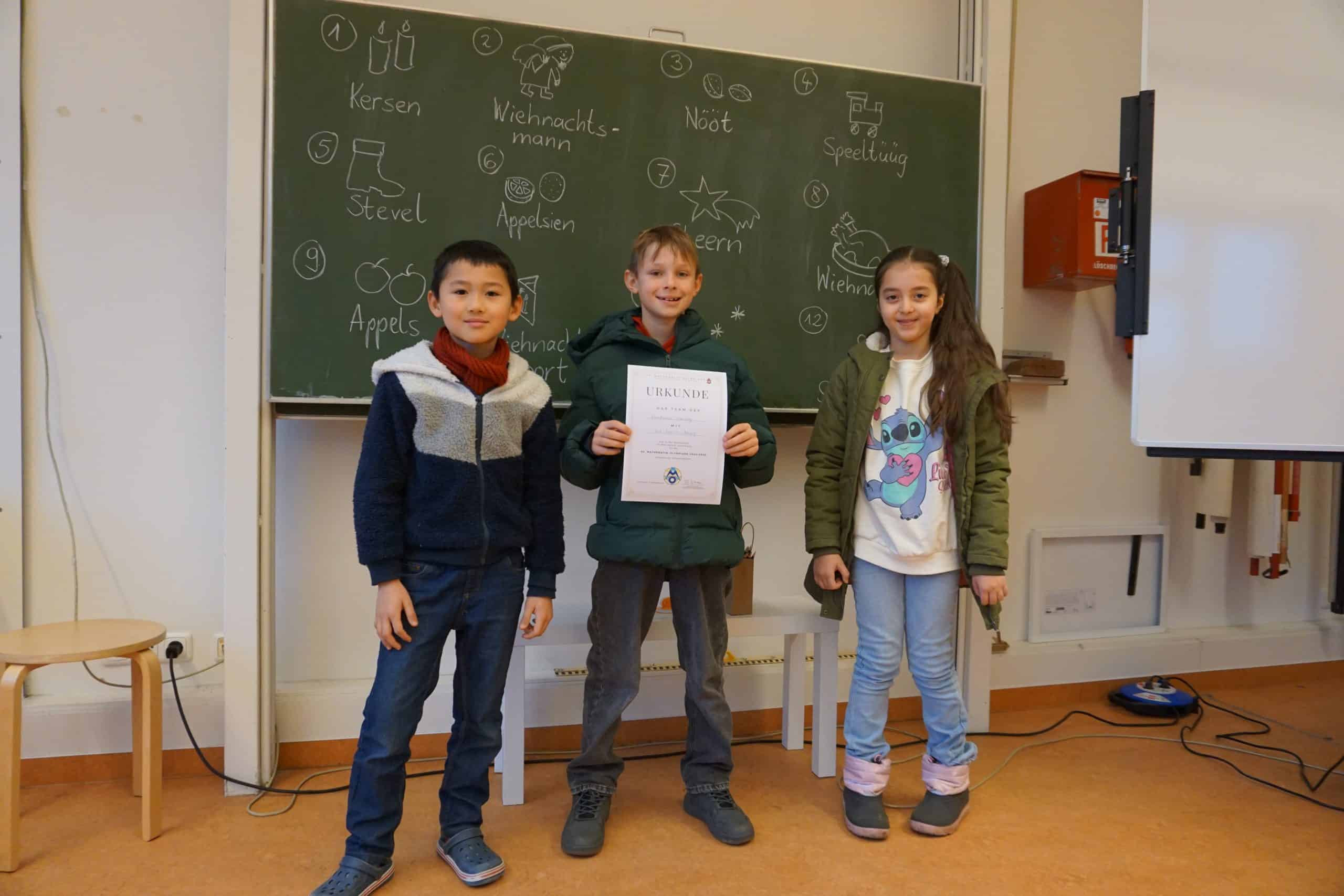 Die Mathematikolympiade ist ein aufregendes Ereignis, das jährlich stattfindet und jungen Mathebegeisterten Schülern und Schülerinnen die Möglichkeit bietet, ihre Fähigkeiten unter Beweis zu stellen. Wir sind sehr stolz auf alle Kinder, die an der Schulrunde teilgenommen haben. Die Schulsieger und Schulsiegerinnen unserer Mathematikolympiade reisten in diesem Jahr am 7. Dezember zur Regionalrunde nach Groß Grönau. Dort stellten sie sich in Dreierteams kniffligen Aufgaben in den Bereichen Arithmetik, Geometrie, Größen und Kombinatorik. Es ist beeindruckend zu sehen, dass so viele Schülerinnen und Schüler bereit sind, ihre Freizeit an einem Samstagmorgen zu opfern, um sich mit komplexen Denkaufgaben auseinanderzusetzen.