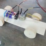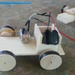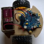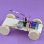 Nachdem die Kinder ein einfaches Fahrzeug aus Holz gebaut haben, probierten sie mit viel Freude einen Motor als Antrieb und einer Handsteuerung aus. Schnell haben die die Kinder erfahren, dass sich ein Fahrzeug mit 2 Motoren gut lenken lässt. Sind beide Tasten gedrückt, fährt das Fahrzeug geradeaus, lässt man eine der beiden Tasten los, fährt es – je nachdem welche – entweder nach links oder rechts. Werden beide losgelassen, stoppt das Fahrzeug.